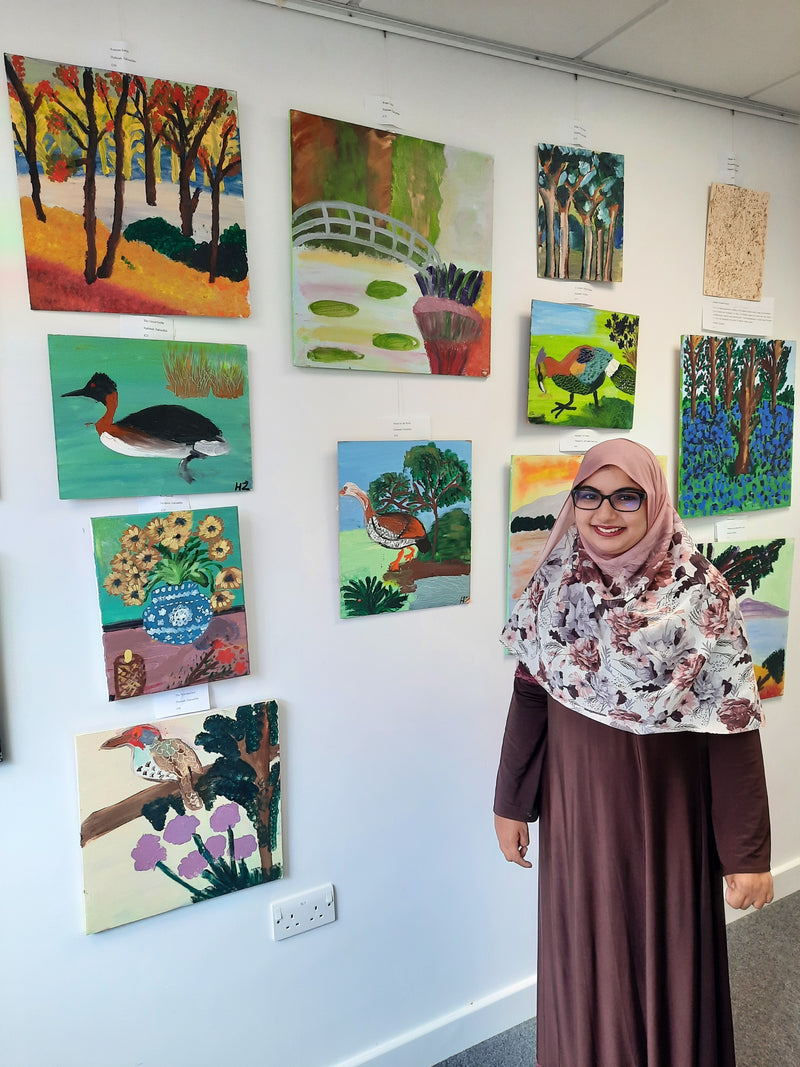 Halimah Zakiuddin is a prolific artist who works with acrylics and textiles. She is also a writer and poet.