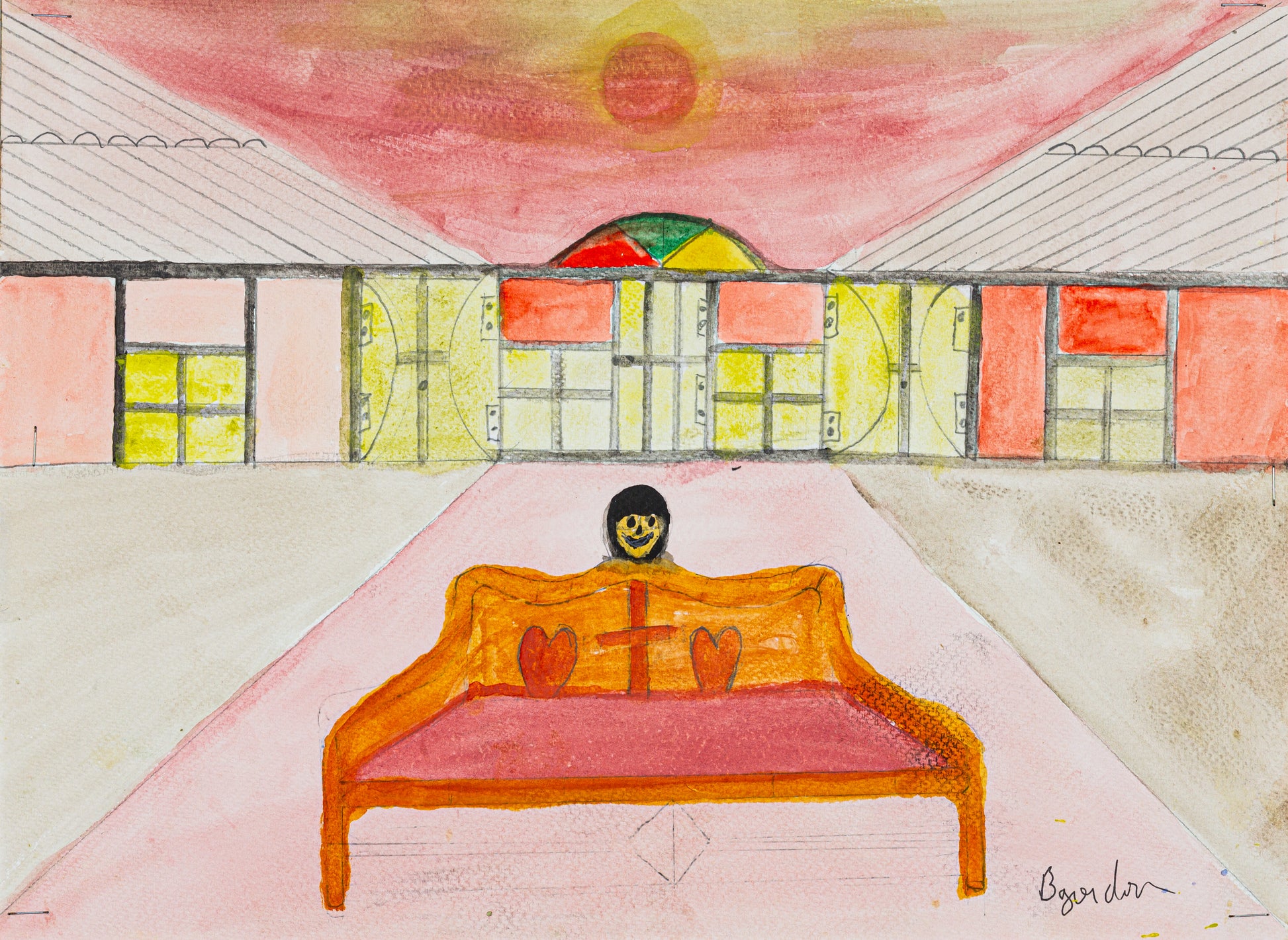 Using mostly watercolours, Barrington’s imagined worlds are surreal dreamlike spaces, partly inspired by his memories of growing up in Jamaica. He is also a gifted singer and musician.